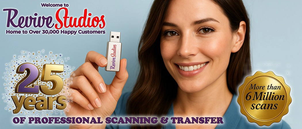 | REVIVE STUDIOS is a caring, family run company with an experienced and knowledgeable team in a fully equipped UK based studio. We have been working since 2000 offering professional scanning, enhancement, restoration & transfer services throughout the UK (top to bottom), Europe but also fulfill projects worldwide from both business and personal customers. We transfer, enhance & restore precious memories, images & footage to the latest and easy to use technologies. We are a specialist company that professionally transfers and converts virtually any type of media to digital forms. |